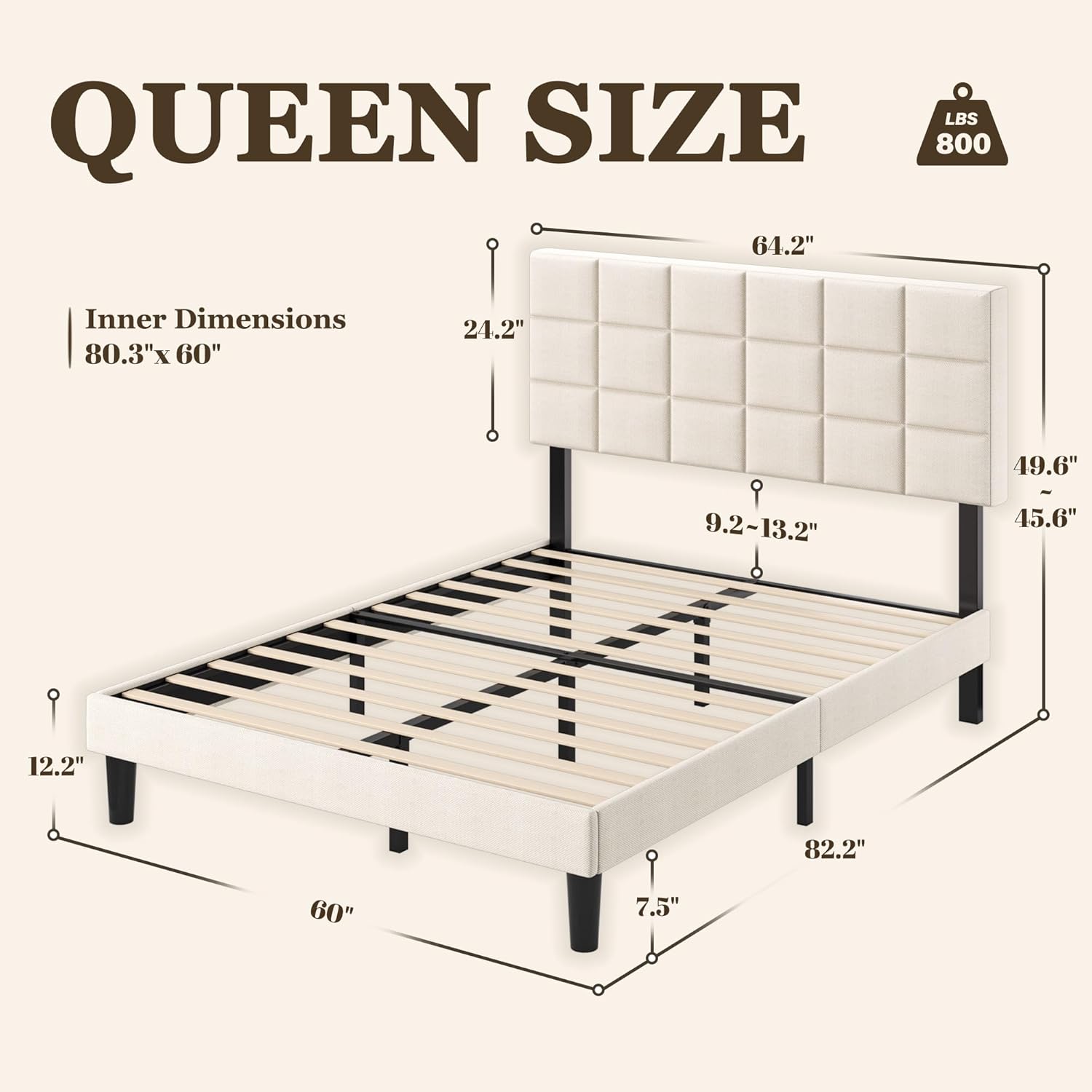 - Bed Size: Queen (60″ x 80″)