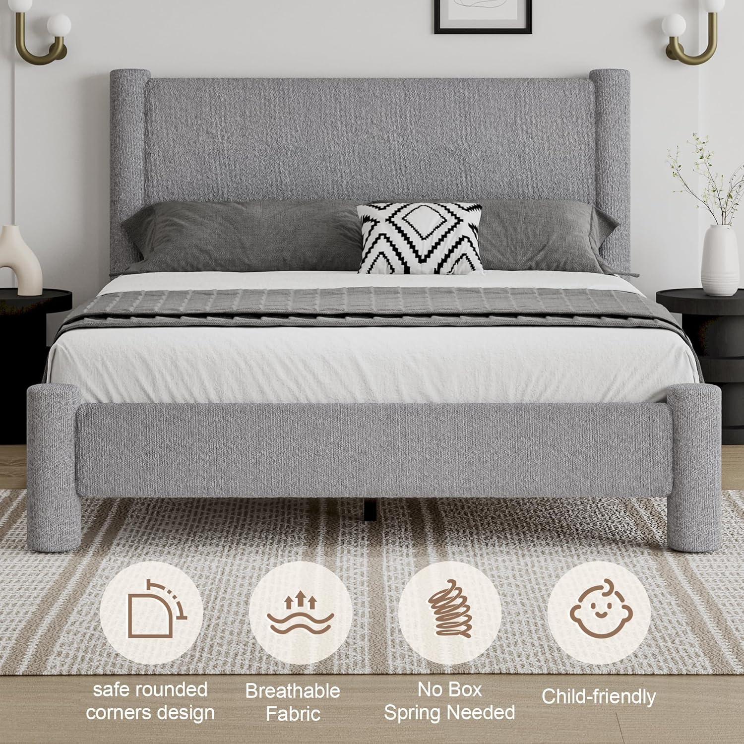 Queen Size Bed Frame, Boucle Upholstered Platform Bed with