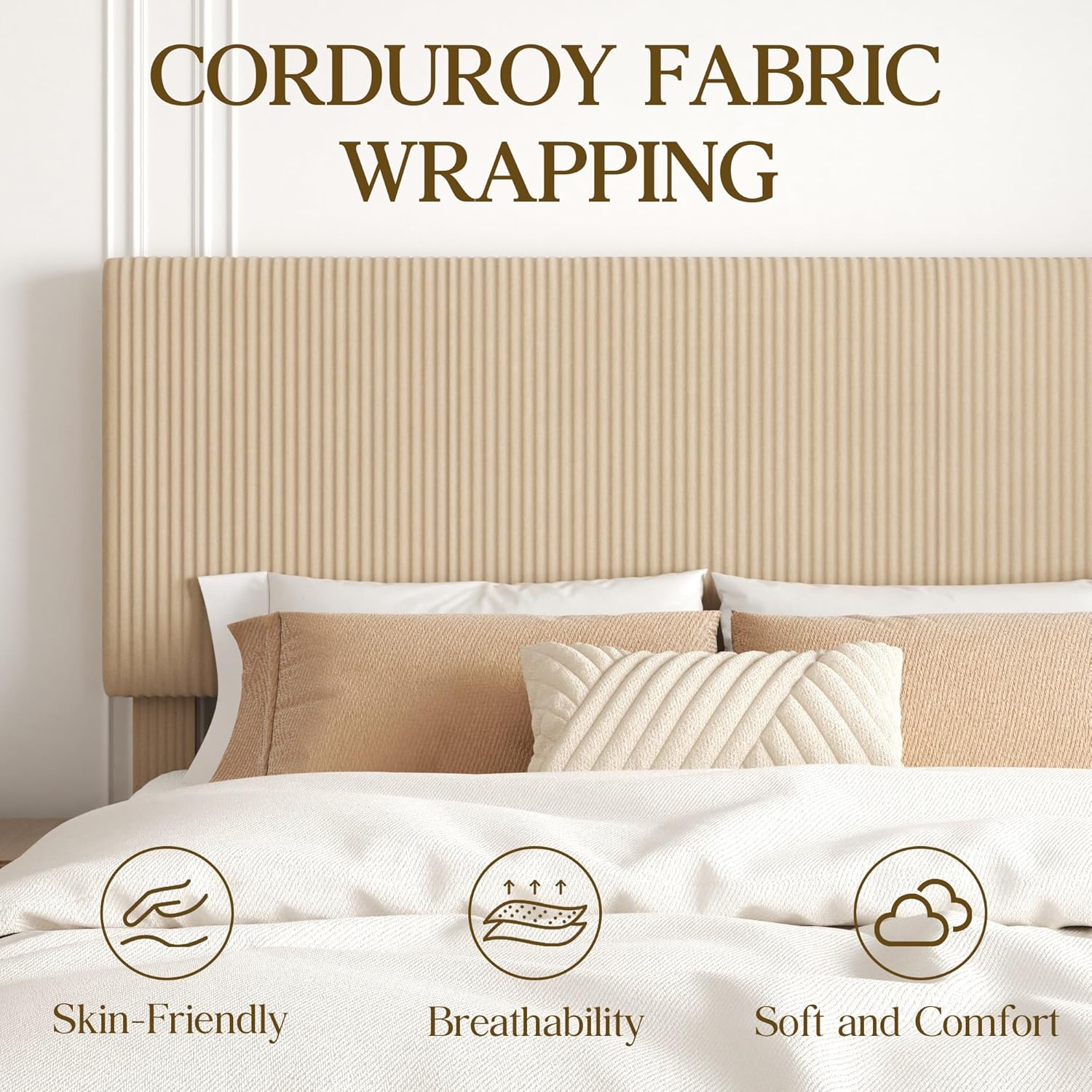 Additionally, the breathable corduroy fabric helps regulate temperature, offering a cooler sleep surface compared to synthetic upholstery. The fabric is also durable and resistant to pilling, helping maintain its luxurious look over time. For best results, pair with a fitted queen sheet set and consider adding decorative pillows or throws to enhance the cozy ambiance.