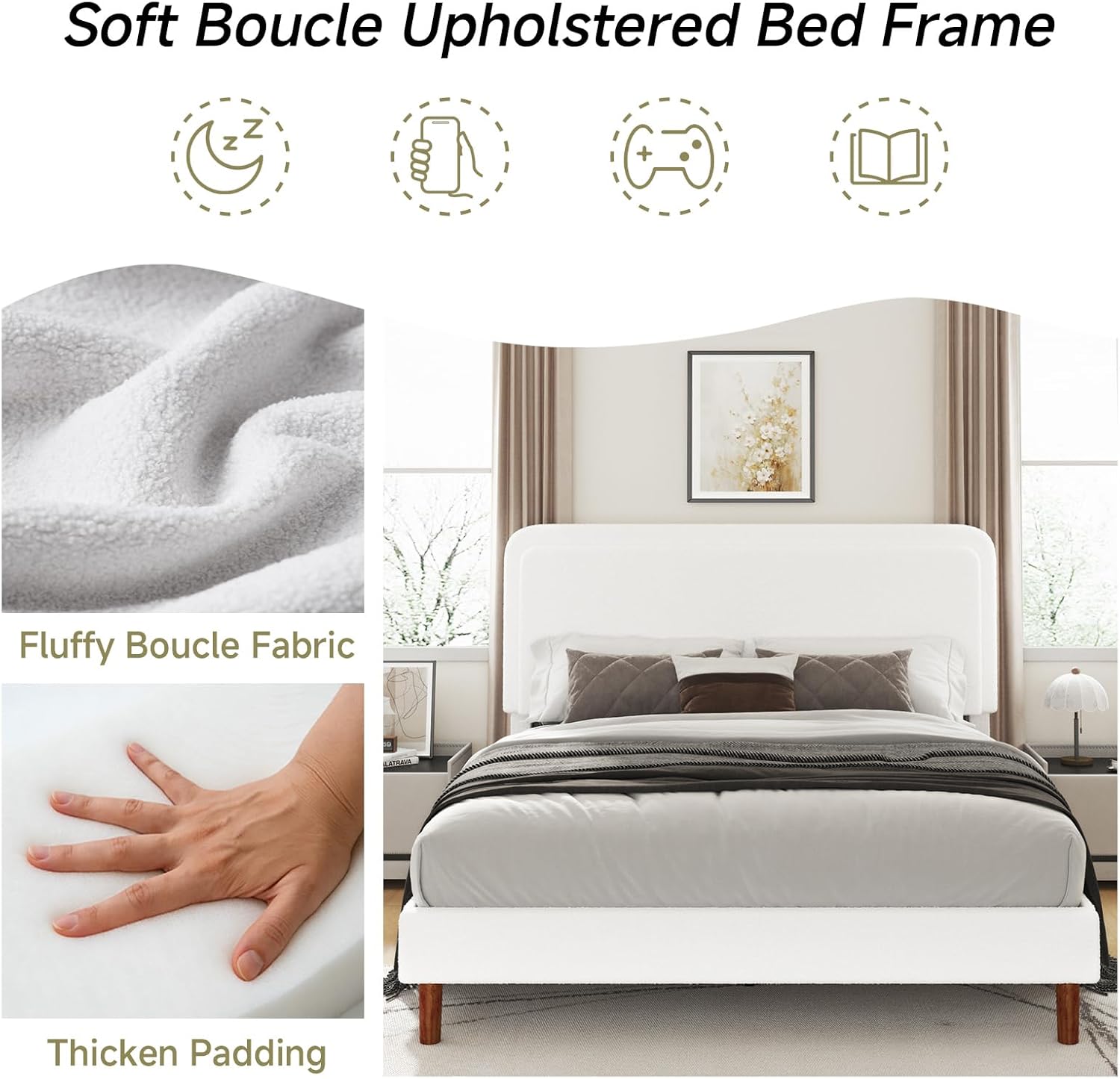 Queen Size Boucle Platform Bed Frame with Adjustable