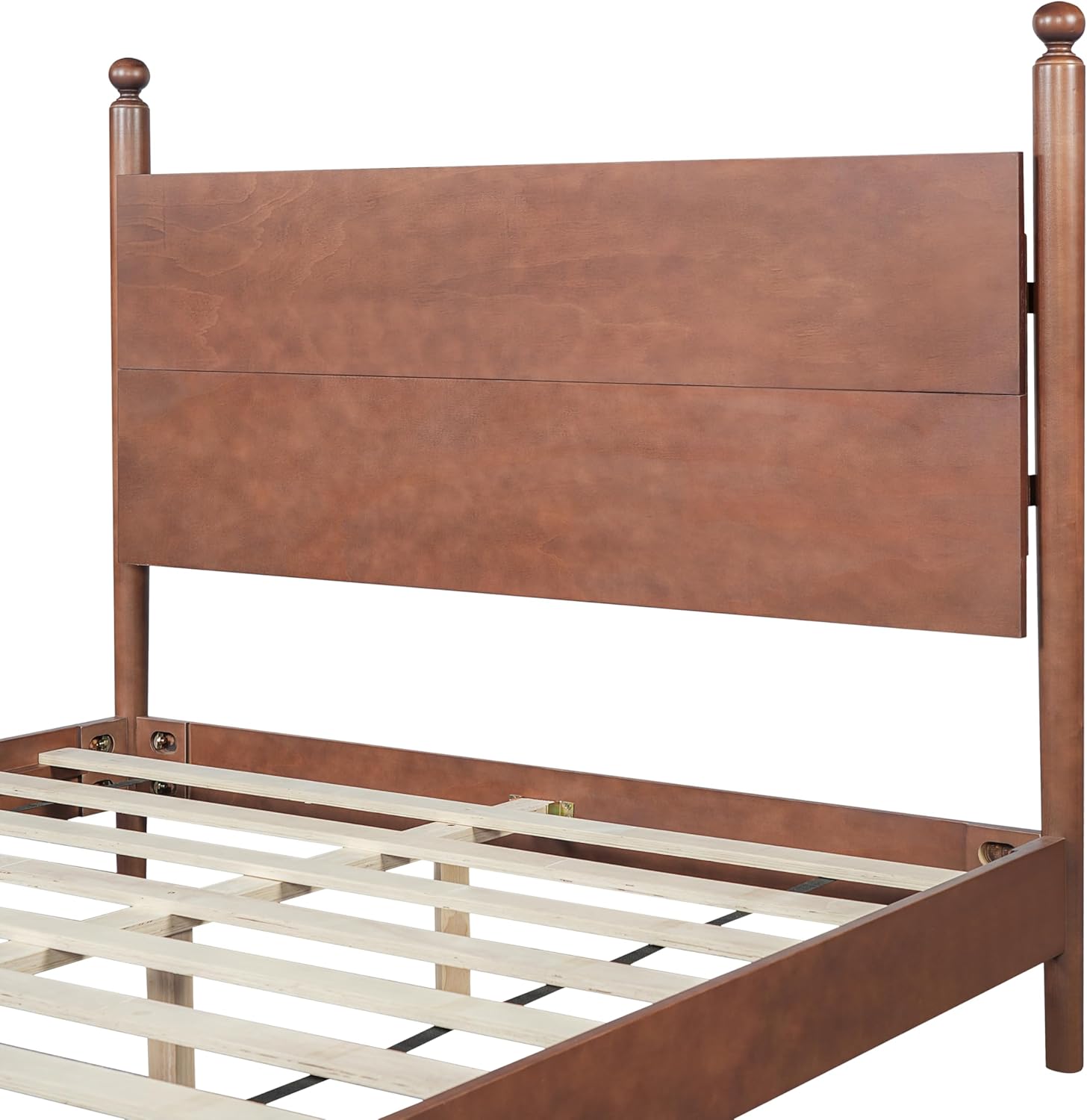 This bed frame is perfect for homeowners, renters, or anyone who appreciates vintage-inspired furniture that blends seamlessly into contemporary decor. Whether used in a master bedroom, guest room, or vacation home, its sturdy build ensures long-term reliability and support. The walnut finish enhances the rich grain of the wood, adding warmth and sophistication to any space. With thoughtful engineering and user-friendly assembly, this bed offers a practical solution for those who value both aesthetics and functionality.
