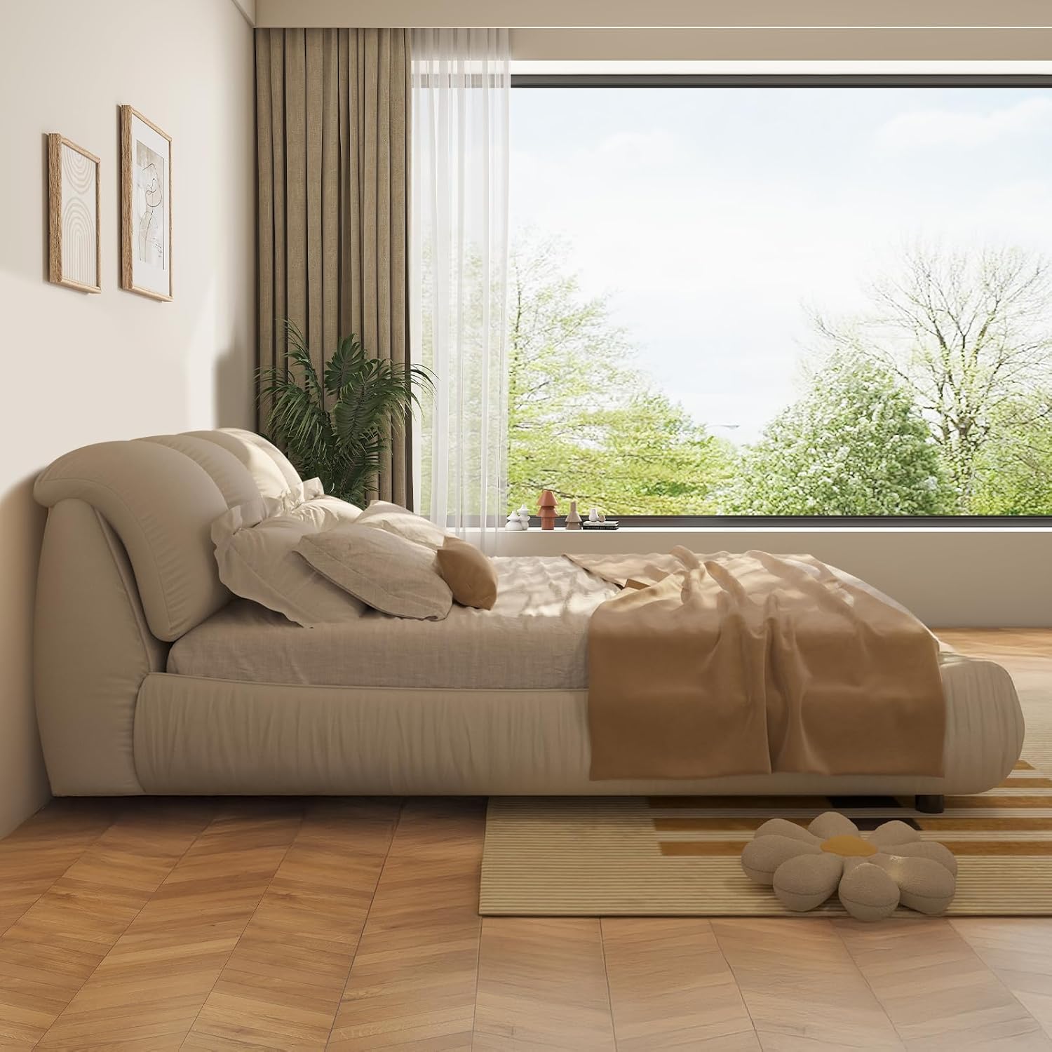Transform your bedroom into a sanctuary of comfort and modern elegance with the Cloud Bed Frame—a queen-size upholstered platform bed designed for both style and durability. Featuring an oversized padded backrest and a robust solid wood frame, this bed seamlessly blends aesthetic appeal with everyday functionality. Perfectly suited for bedrooms and apartment rooms, it delivers a sleek, low-profile silhouette that enhances any space without overwhelming it. The neutral beige upholstery complements a wide range of décor styles, making it a versatile addition to contemporary, minimalist, or Scandinavian-inspired interiors. Whether you’re furnishing a master suite, guest room, or compact living area, the Cloud Bed Frame offers a reliable foundation for restful nights and stylish mornings.
