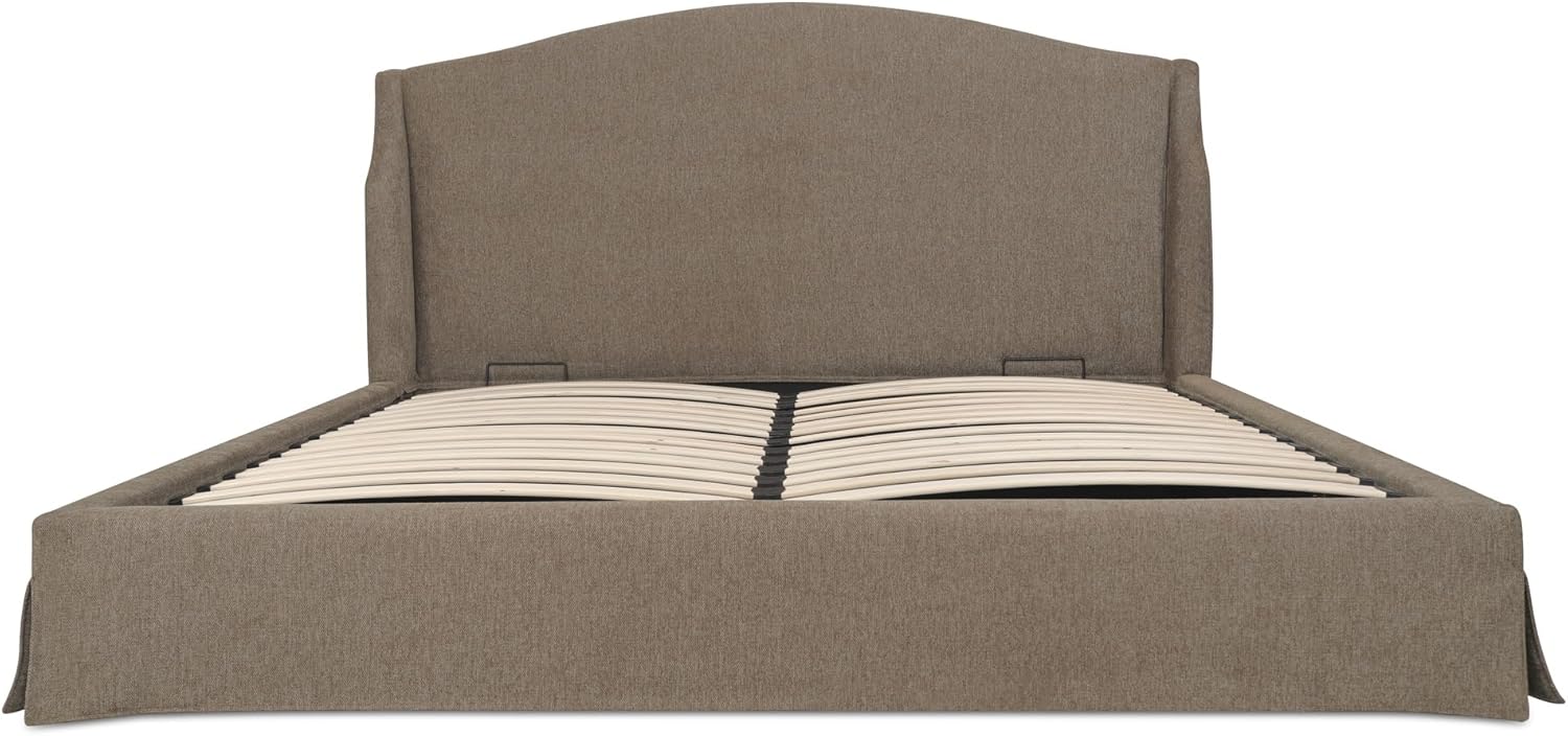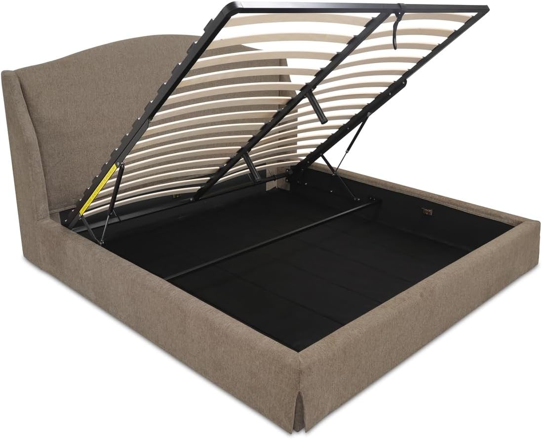 The Rastus Queen Storage Bed is designed to elevate your bedroom with a perfect balance of timeless style and smart functionality. Featuring a classic wingback headboard and rich brown upholstery, this bed brings warmth and sophistication to any space. The soft polyester fabric not only enhances comfort but also complements a wide range of interior aesthetics—from traditional to modern transitional styles. What truly sets this piece apart is its removable slipcover, which offers the flexibility to refresh your décor or simplify cleaning without replacing the entire bed. Underneath the mattress, a robust hydraulic lift system reveals ample hidden storage, making it an ideal solution for those who value organization without compromising on design.
