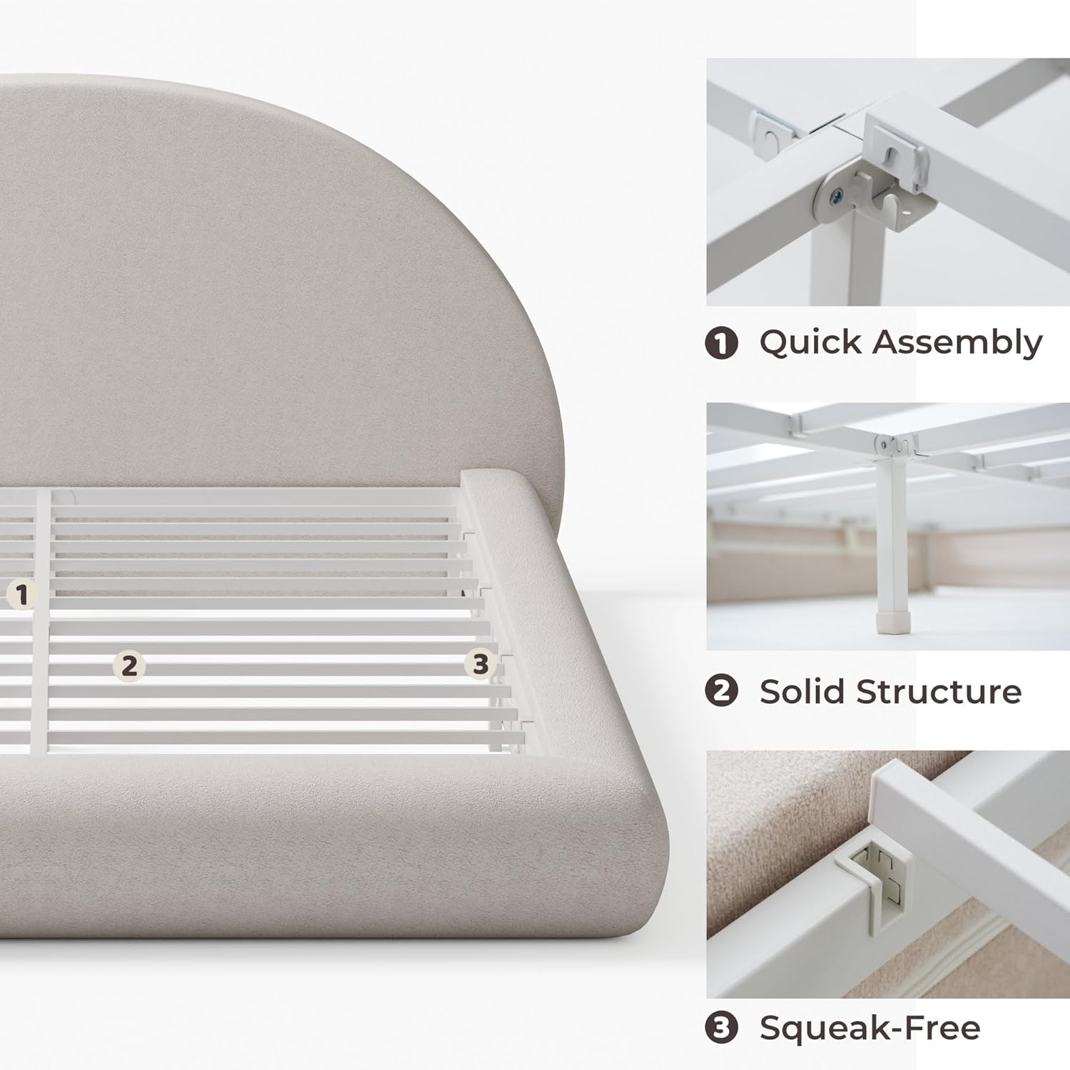 - Headboard Shape: Curved half-moon arch for ergonomic support and visual appeal