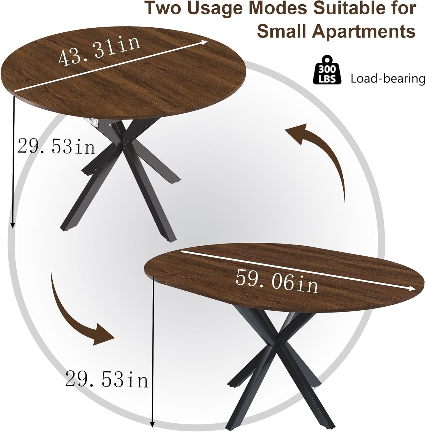 - Table Dimensions (Extended): Up to 59 inches in diameter
