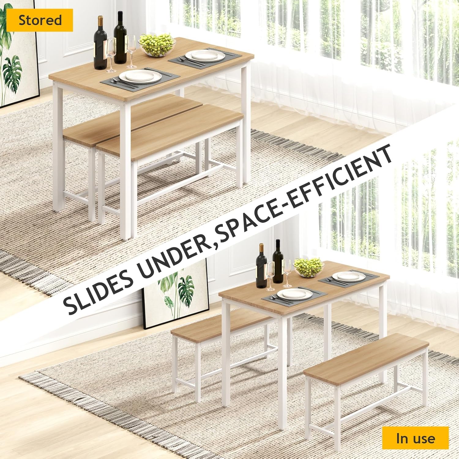 - Four-Seat Flexibility: Two standard chairs plus two integrated benches provide flexible seating for up to four diners, making it ideal for smaller households or multi-generational families.