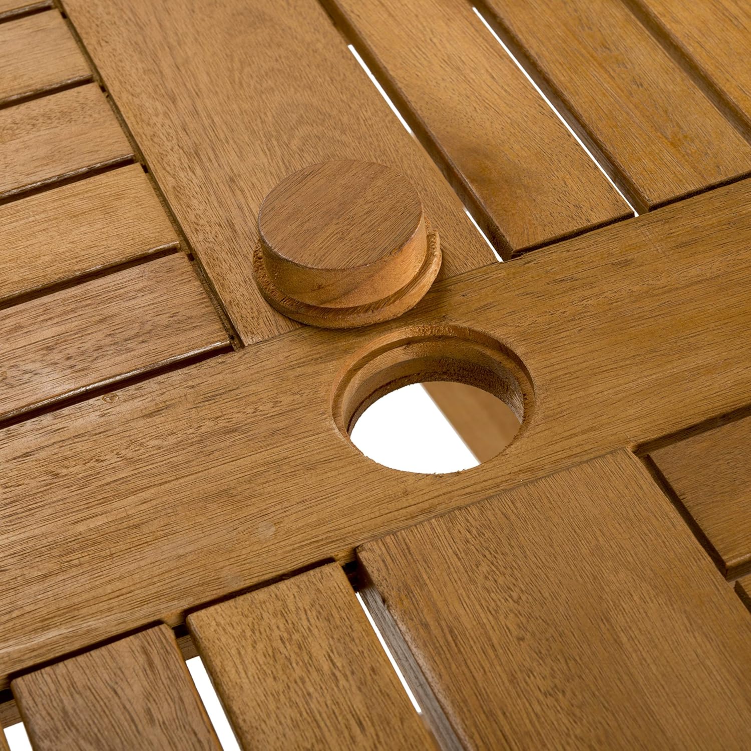 - Elegant Teak Finish: Crafted with a rich teak-colored wood frame, the table exudes natural warmth and sophistication, effortlessly complementing a wide range of outdoor decor styles from coastal to contemporary.