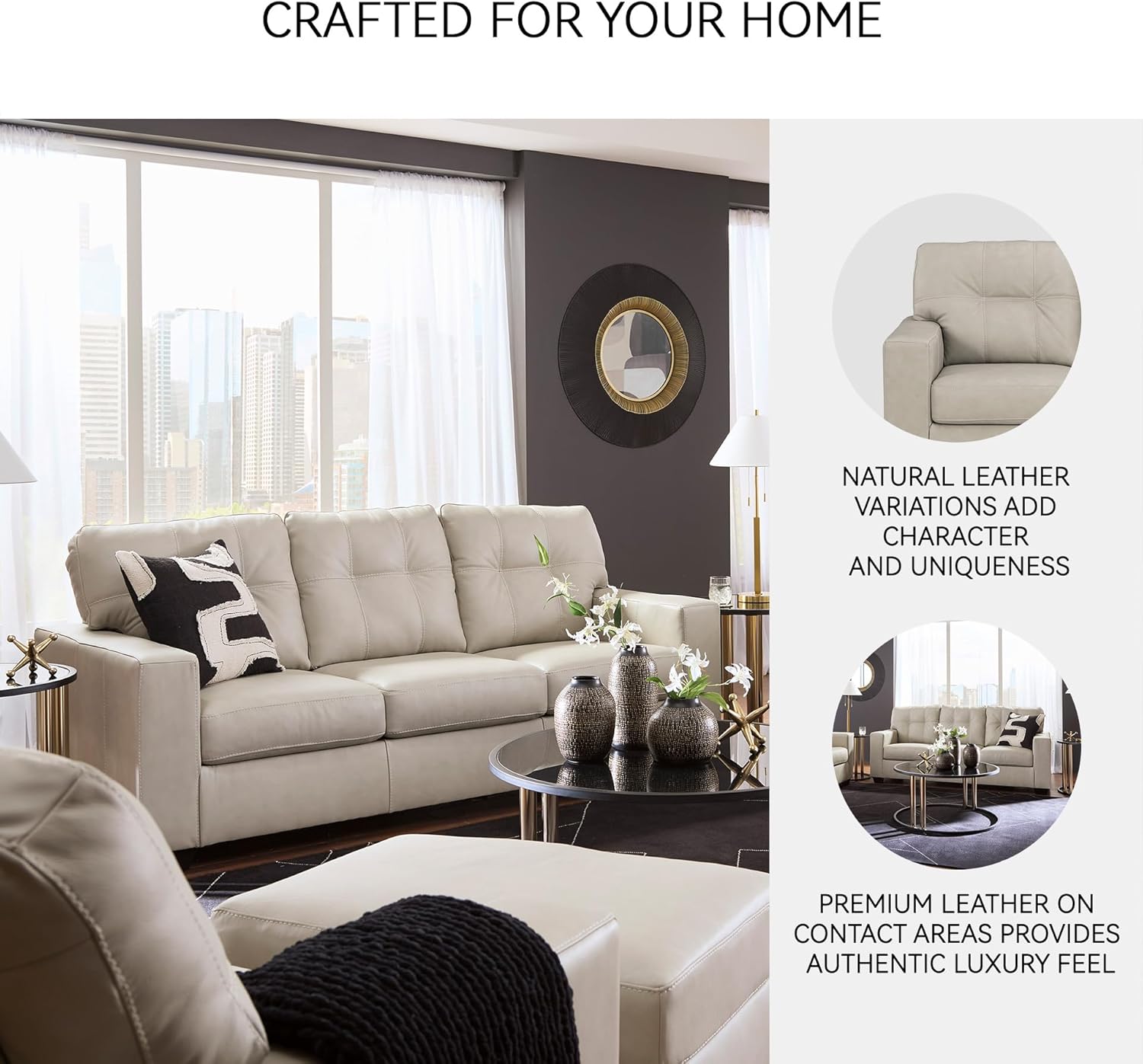 The Signature Design by Ashley Santorine Classic Leather Match Sofa blends timeless elegance with modern practicality, making it a standout choice for homeowners and renters alike. Designed to complement both contemporary and traditional interiors, this sofa delivers an inviting focal point in any living room, den, or lounge space. Its clean-lined silhouette, paired with rich leather-match upholstery, creates a sophisticated yet approachable aesthetic that doesn’t compromise on comfort or durability. Whether you’re hosting guests or unwinding after a long day, the Santorine sofa offers generous seating and thoughtful design features that elevate everyday relaxation.