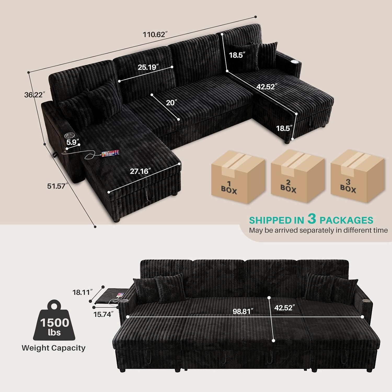 The Sleeper Sectional Sofa redefines modern living with its innovative U-shaped design and versatile functionality. Measuring 110 inches in length, this modular couch is engineered to maximize comfort and utility in small to medium-sized spaces without sacrificing style. Crafted from soft, durable corduroy fabric in a sleek black finish, it delivers both visual appeal and tactile luxury. What truly sets this sectional apart is its seamless transformation—thanks to a hidden pull-out bed mechanism—into a spacious sleeping area for guests or everyday use. Whether you’re hosting overnight visitors, working from home, or simply unwinding with family, this sofa adapts effortlessly to your needs.