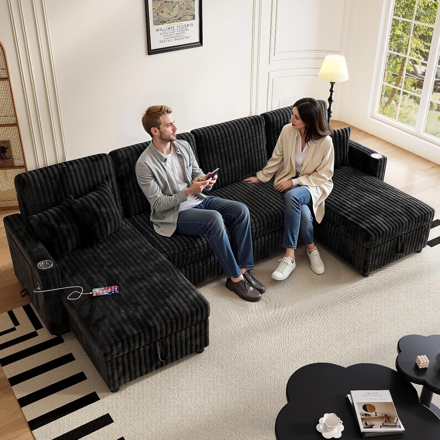 This sleeper sectional is thoughtfully designed for urban dwellers, studio apartments, and homes where space efficiency matters. Its convertible feature eliminates the need for a separate guest bed, saving money and square footage. The 110-inch length strikes an ideal balance between generous seating and spatial awareness—making it suitable even for tighter layouts. Remote workers will appreciate the built-in desktop and USB ports, which create a dedicated workspace without leaving the comfort of their couch. Families enjoy the double storage chaise for organizing kids’ toys or household essentials, while the U-shape naturally draws people together for movie nights or casual hangouts. The corduroy fabric adds a cozy, inviting texture that enhances any contemporary or transitional interior design.