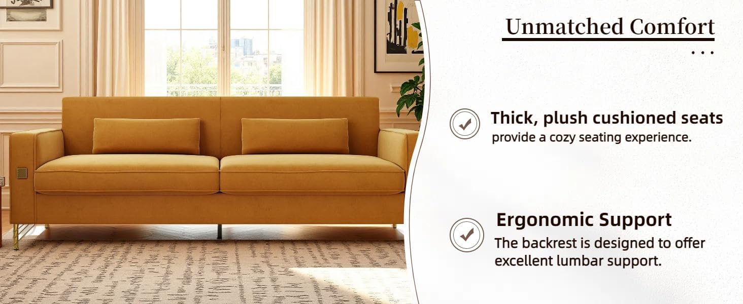 - Luxury Velvet Upholstery: Crafted from premium-quality velvet, this sofa features a soft, tactile surface with a natural sheen that enhances the depth and richness of its color. The luxurious texture invites touch while maintaining a sophisticated appearance suitable for upscale interiors.