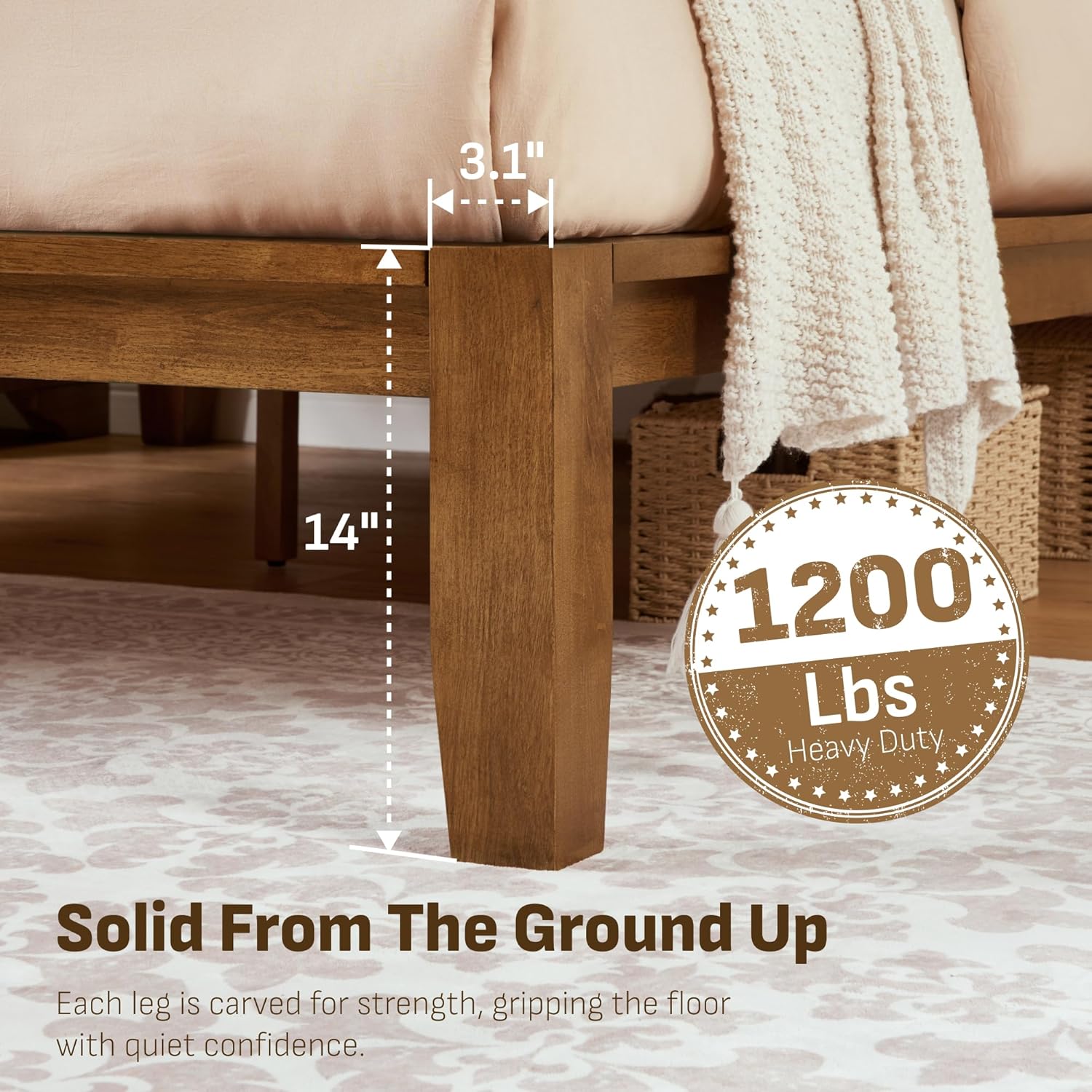 - 1200-Lb Stability with Zero Noise: Engineered for maximum support and total quiet, the bed withstands up to 1200 pounds without wobbling or creaking. Thick 3.1-inch solid wood legs combine with a reinforced, interlocking frame to deliver rock-solid stability—even when shifting positions, sitting at the edge, or sharing space with children or pets. The structure remains firm and whisper-silent under daily use, offering a premium feel that lasts for decades.