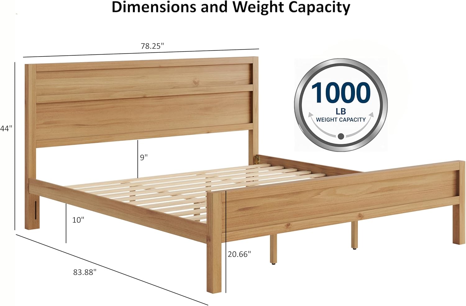 - Frame Support: Solid Wood Slats (no additional foundation needed)