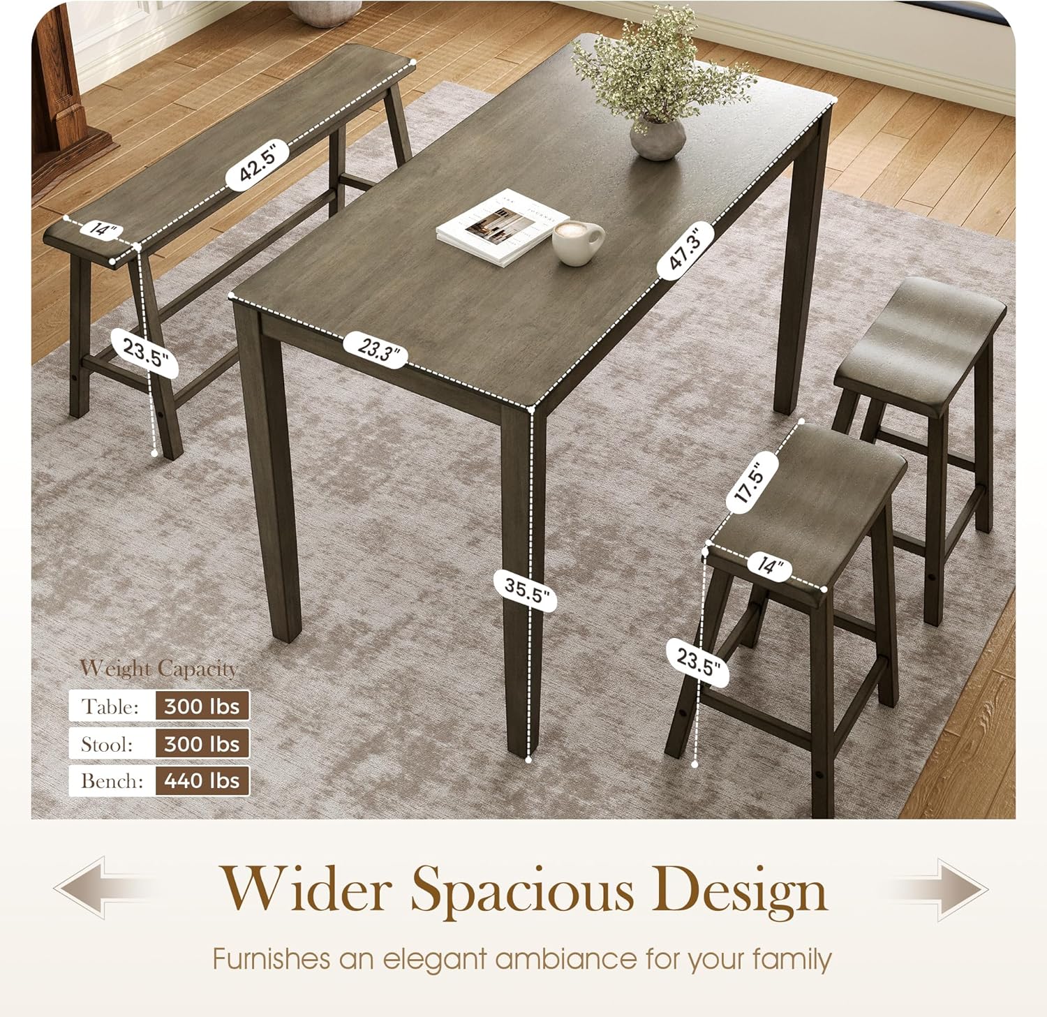 The Sophia & William Dining Table Set is ideal for homeowners who value both form and function, especially in limited living spaces. Its counter height design encourages relaxed, informal dining experiences—perfect for breakfast nooks, casual brunches, or quick meals at home. The compact footprint ensures it fits comfortably in smaller areas without overwhelming the room, while the ability to store the bench and chairs underneath the table keeps floors clear and maintains a tidy appearance.