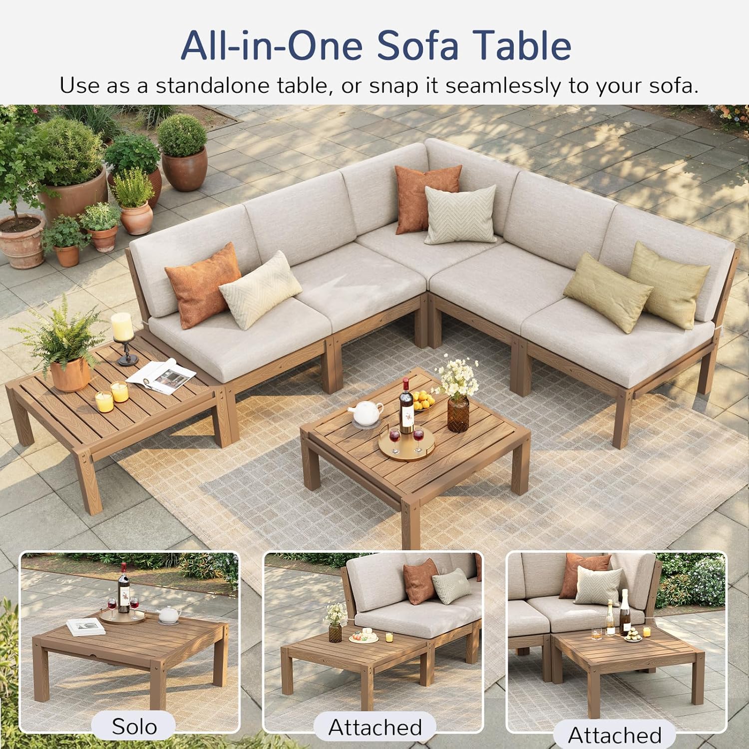 - True Modular Flexibility: Includes nine interchangeable components—armchairs, armless chairs, corner pieces, and tables—that connect seamlessly to form gap-free configurations. Whether you prefer an intimate L-shape for two or a social U-shape for eight, the unified design ensures visual continuity and structural integrity across every arrangement.