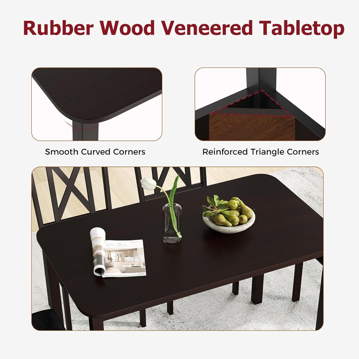 Tangkula 47″ Dining Table Set for 4, Farmhouse Solid Wood