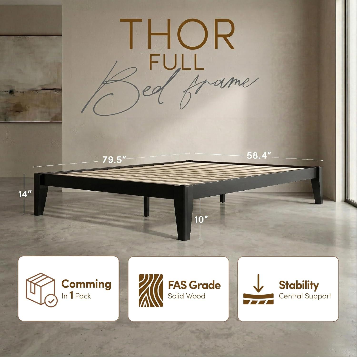 Thor Premium Solid Wood Bed Frame Full, Japanese Joinery Bed