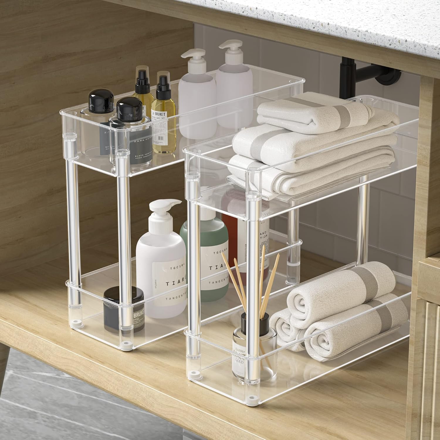 WIDELY USED – TESOIN Under Sink Storage great for closets, kitchens, bathrooms, pantry, laundry rooms, offices desk, kitchens cabinet, pantry room, desk and so on
