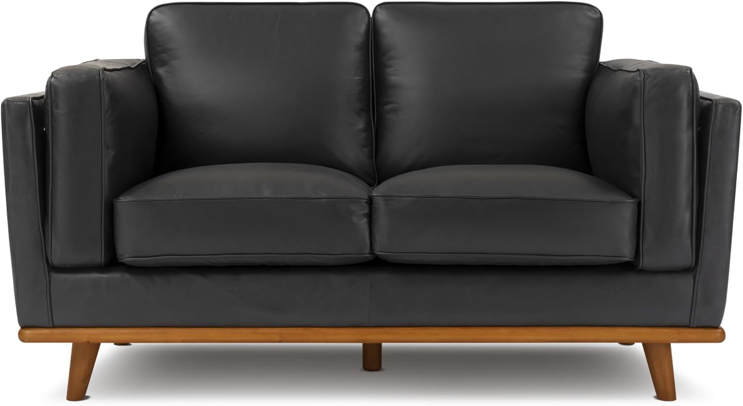 The Valencia Artisan Full Leather Loveseat Sofa offers a luxurious seating solution crafted from premium Italian genuine Nappa leather. Designed for those who appreciate refined craftsmanship and timeless style, this 66-inch loveseat blends mid-century modern aesthetics with everyday comfort. Its rich black finish and mahogany-toned solid wood base create an elegant focal point suitable for living rooms, dens, or compact spaces. Built for durability and lasting beauty, each piece stands out due to the distinctive depth of color in its hand-selected leather covers—making every sofa one-of-a-kind. Whether you’re upgrading your home decor or furnishing a new space, this couch delivers both visual appeal and functional comfort.