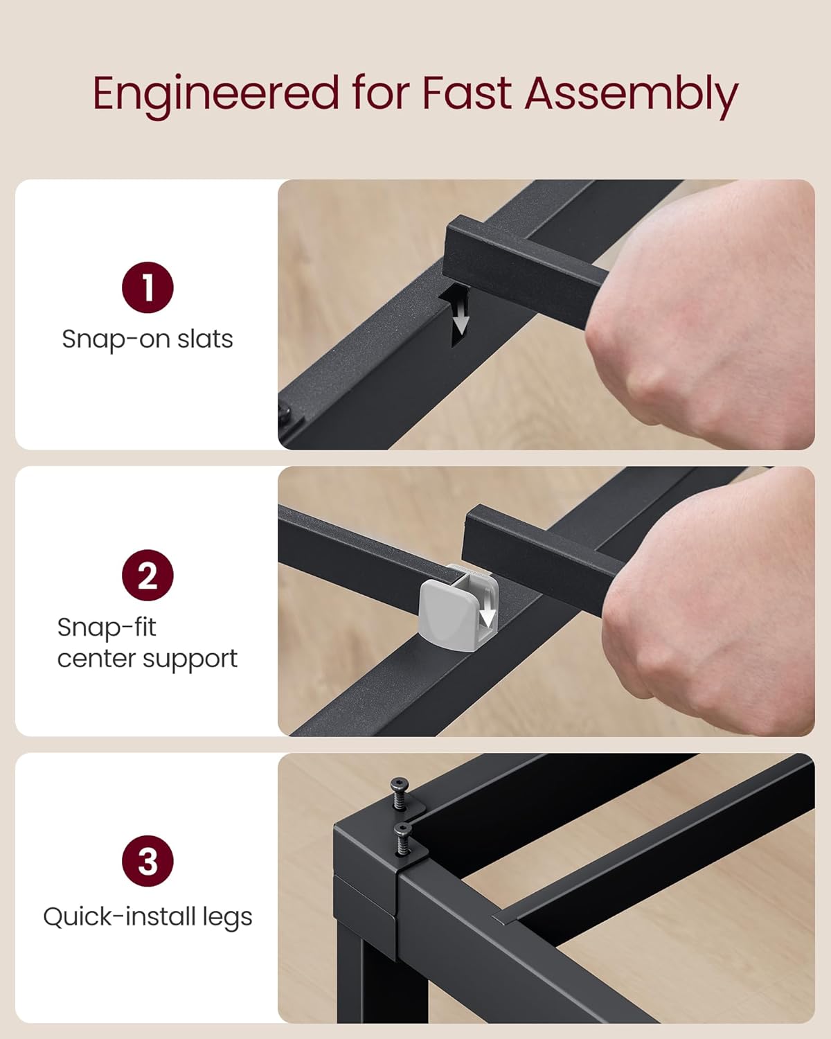 VASAGLE Queen Metal Bed Frame 14 Inches Tall, 1100 lb Weight