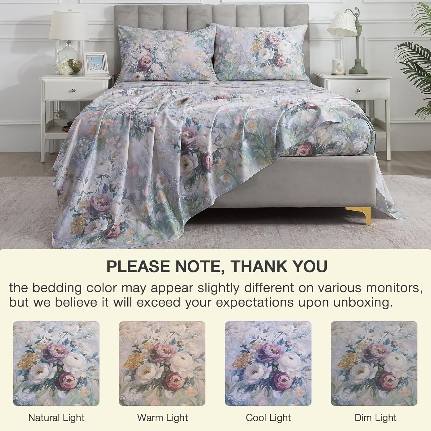 Vintage Floral Sheets Queen, 100% Cotton Percale Shabby Rose