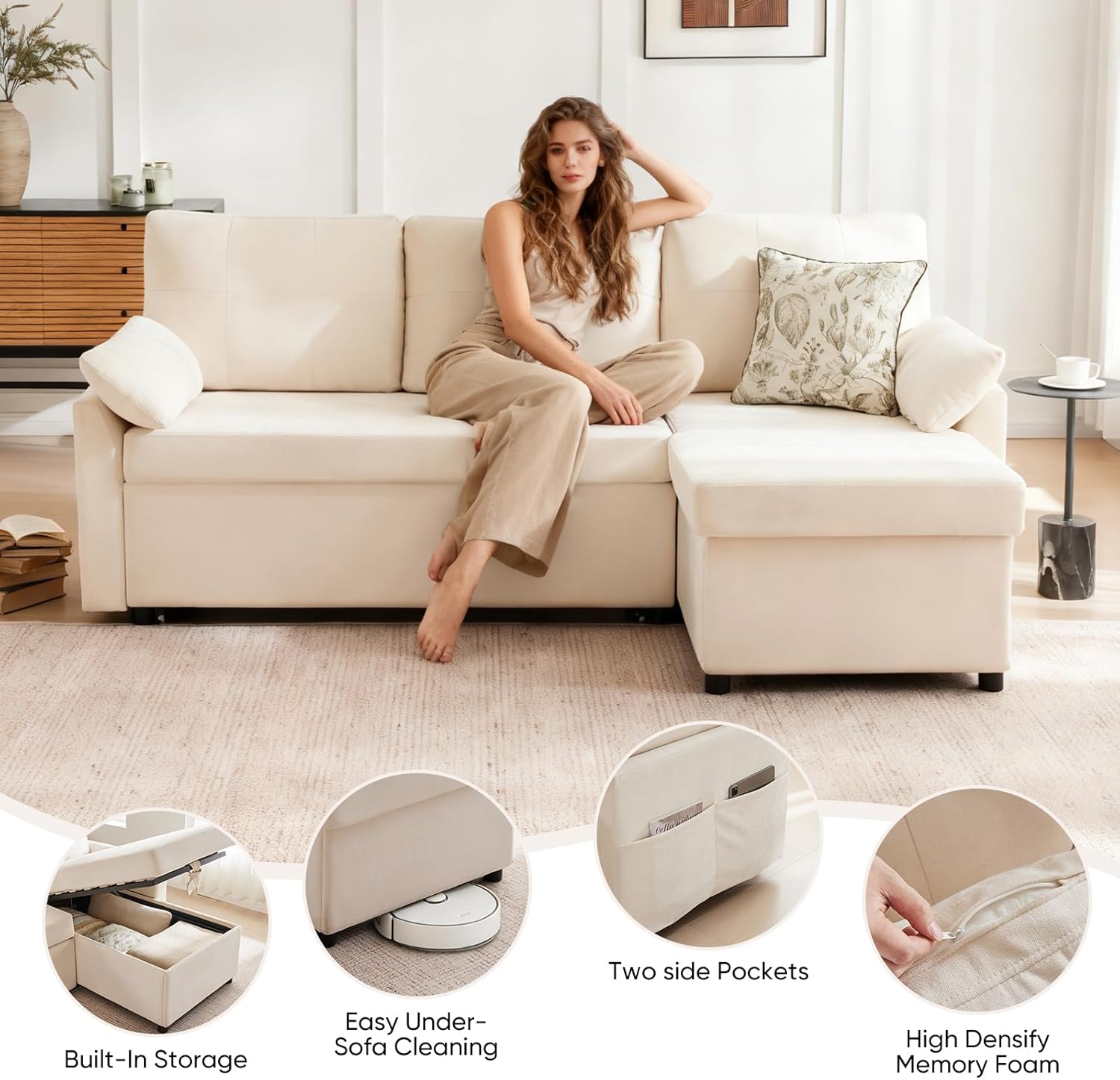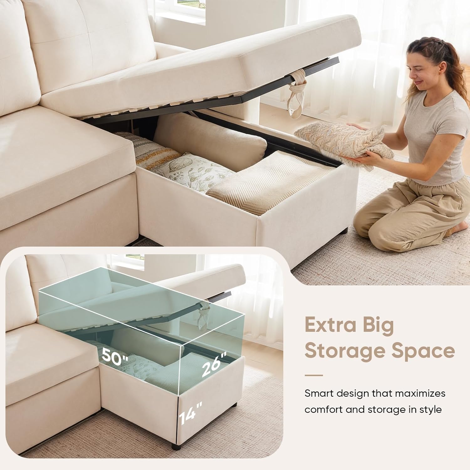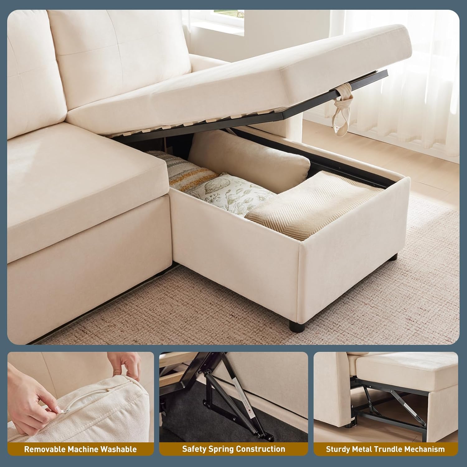- Integrated Storage Compartment: A hidden storage area located beneath the main seating section offers discreet organization for blankets, throw pillows, remotes, or seasonal items. Keeping clutter out of sight helps maintain a clean, uncluttered living environment.