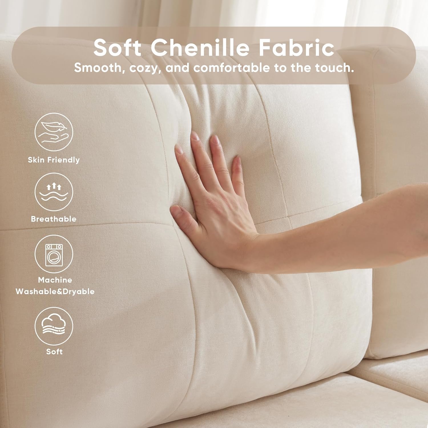 - Premium Chenille Fabric Upholstery: Wrapped in soft yet resilient chenille fabric, this sofa resists pilling and maintains its luxurious look even under daily use. The texture not only feels inviting but also complements a wide range of interior styles—from minimalist to rustic-chic.