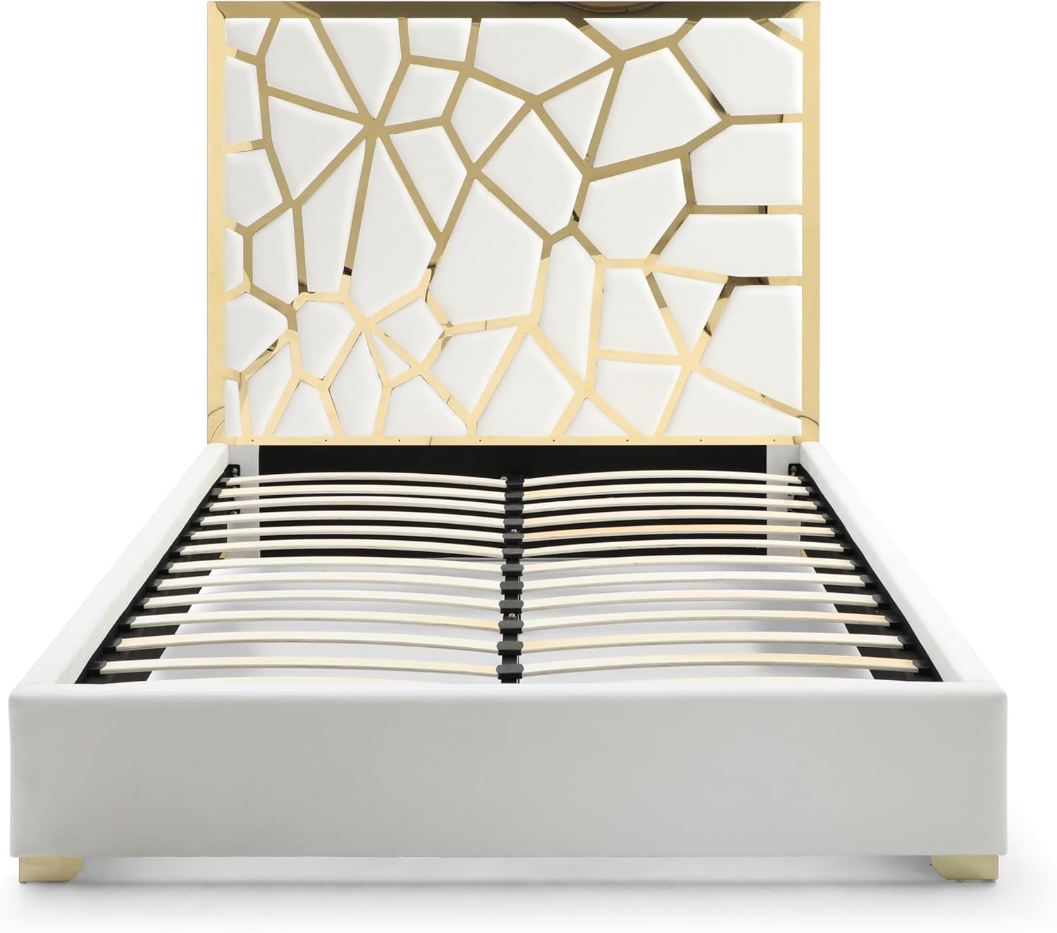 - Metal Frame Functionality: While the gold metal trim enhances the headboard’s visual appeal, it is decorative in nature and does not serve as a structural load-bearing component. Always pair this bed with a suitable mattress and foundation to ensure proper support and longevity.