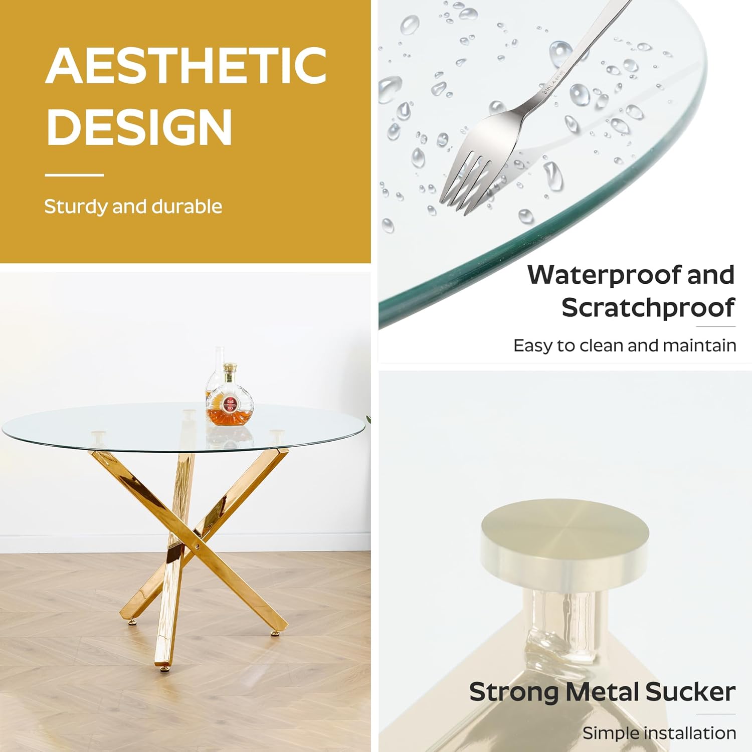 yeag 47 in Luxury Tempered Glass Dining Table Set with 4