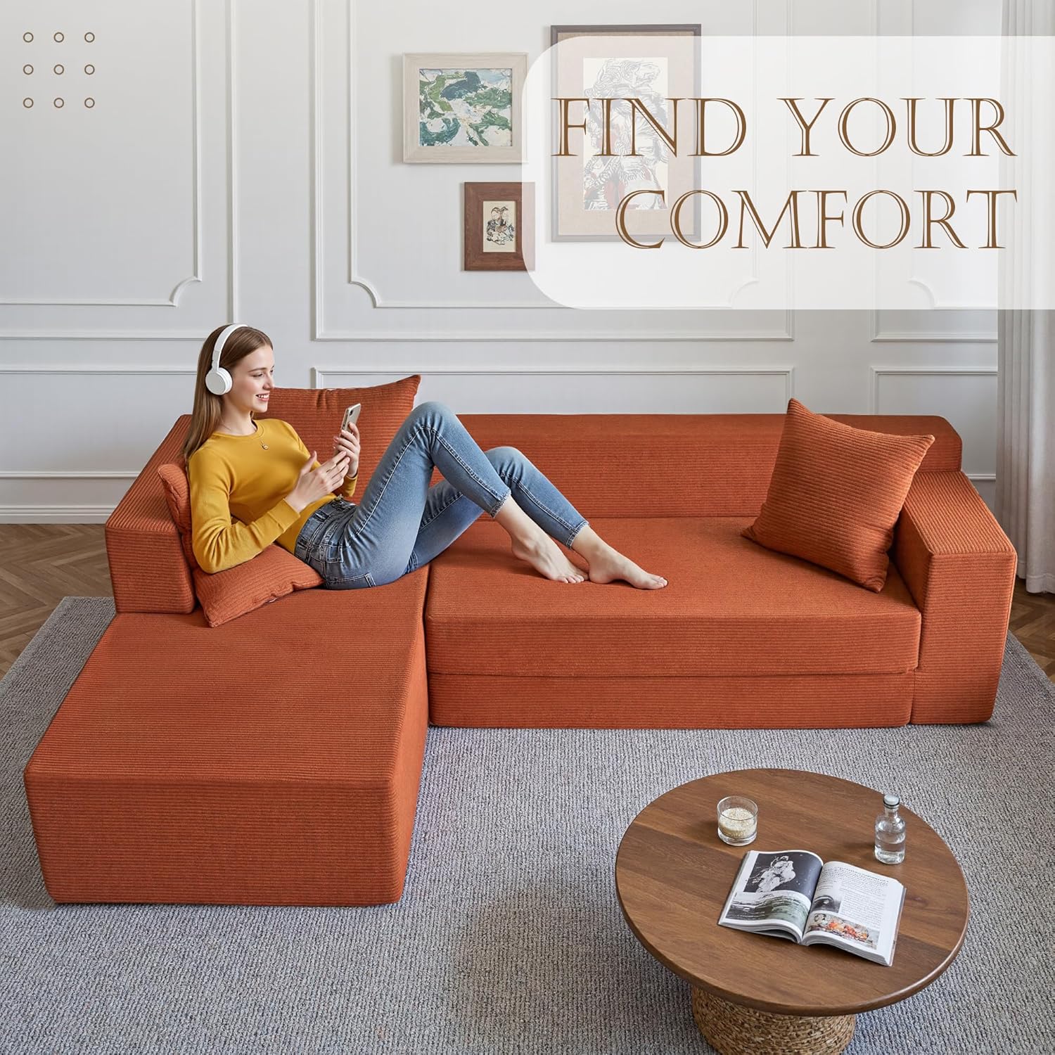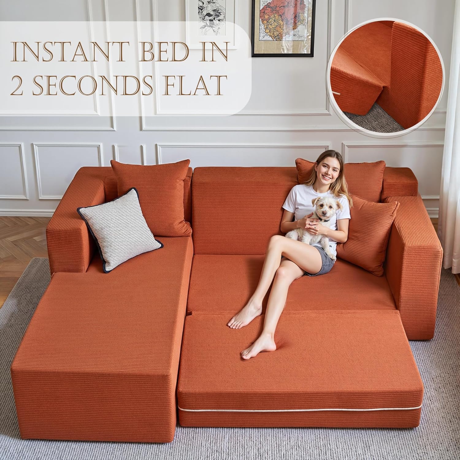 The YINIX 106″ Modular Sectional Sofa redefines modern living with its spacious L-shape chaise design and cloud-like comfort. Crafted for effortless relaxation, this no-assembly couch features a deep-seated floor sofa style that invites you to sink in and unwind. Made with premium memory foam and luxuriously soft corduroy fabric, it delivers a restful experience perfect for daily lounging or hosting guests. Whether placed in your living room or bedroom, its flexible modular system adapts to your space and lifestyle with ease.