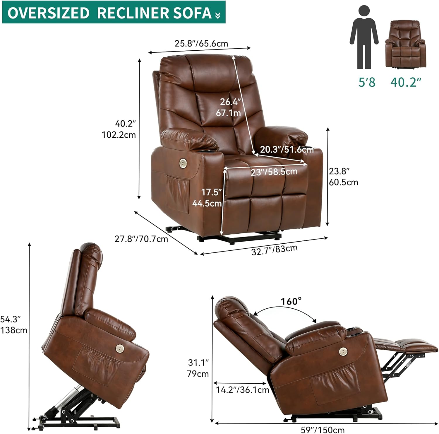 8 reviews for YITAHOME Electric Power Lift Recliner Chair for Elderly, Faux Leather Recliner Chair with Massage and Heat, Spacious Seat, USB Ports, Cup Holders, Side Pockets, Remote Control (Dark Brown)