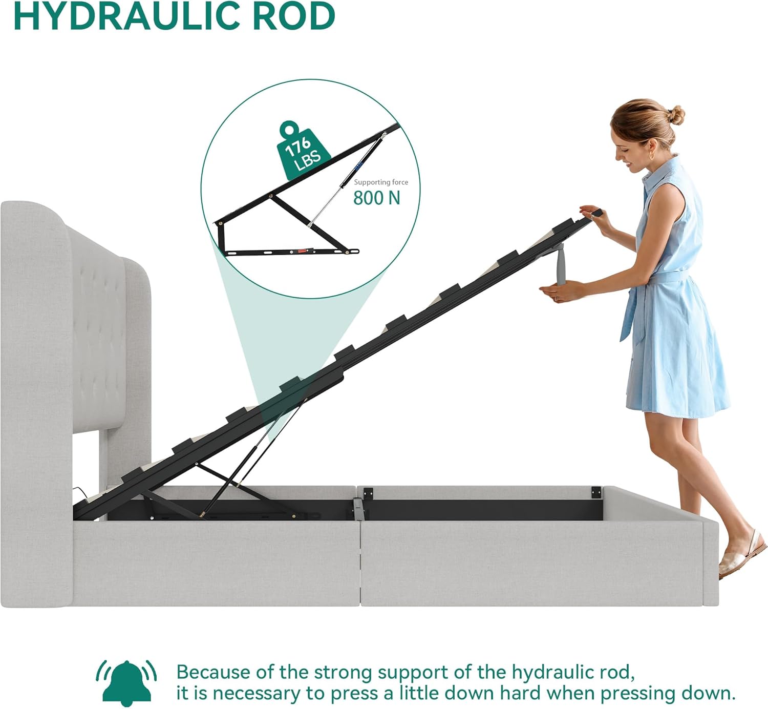 To ensure proper fit and function, verify that your mattress measures exactly 60” x 80” (queen size) before assembly. Using a mattress outside these dimensions may prevent the hydraulic system from opening fully or cause discomfort during lifting. Due to the weight and size of the frame, we recommend two people assist with unpacking and initial setup to avoid strain or potential damage. While the hydraulic mechanism is built for durability, periodic checks for smooth operation are advisable—though no specialized tools or maintenance are typically required. Always refer to the included assembly checklist to confirm all parts are accounted for before beginning construction. Please note that this product is intended solely for indoor residential use and should not be exposed to moisture or outdoor conditions.